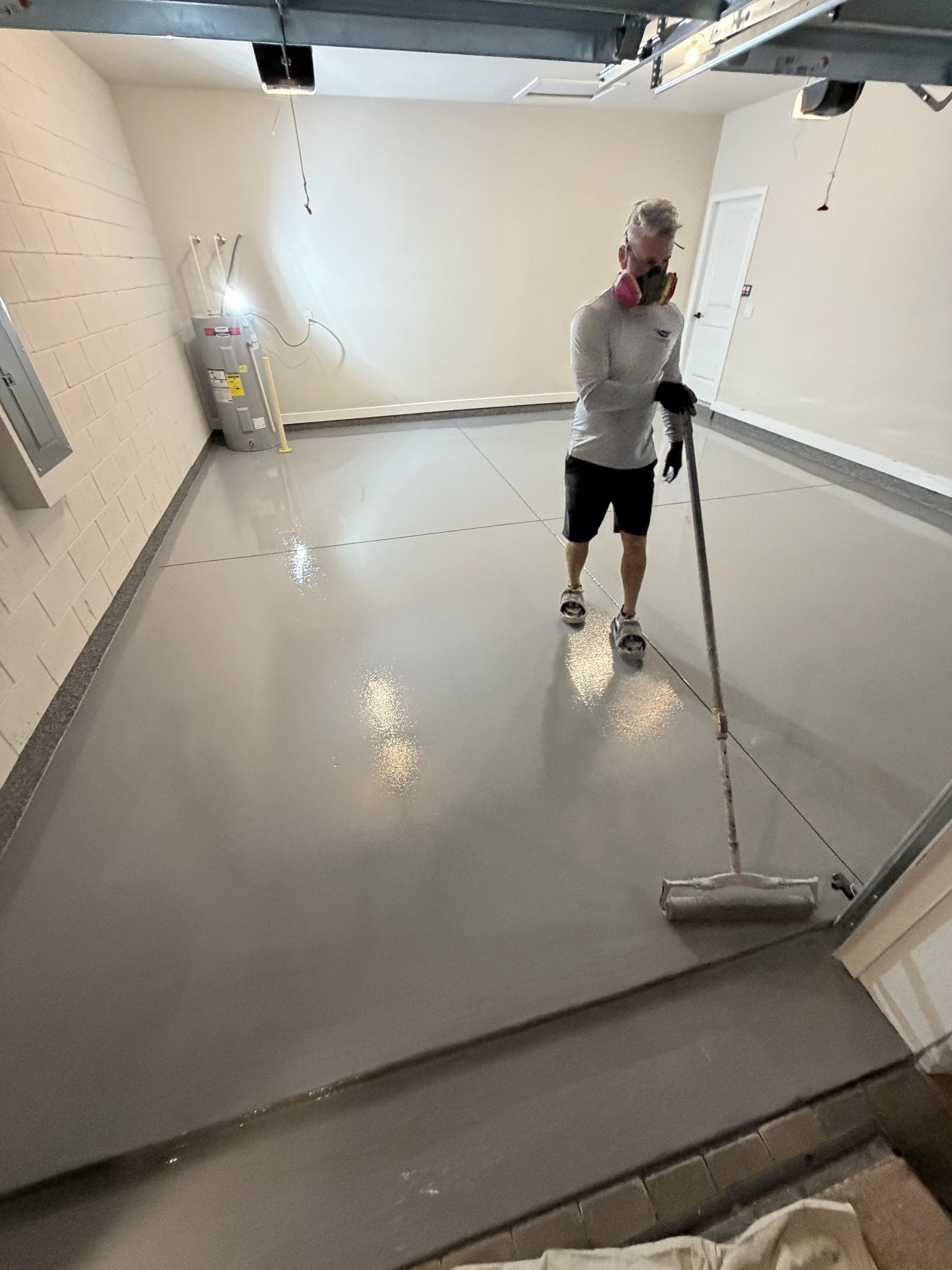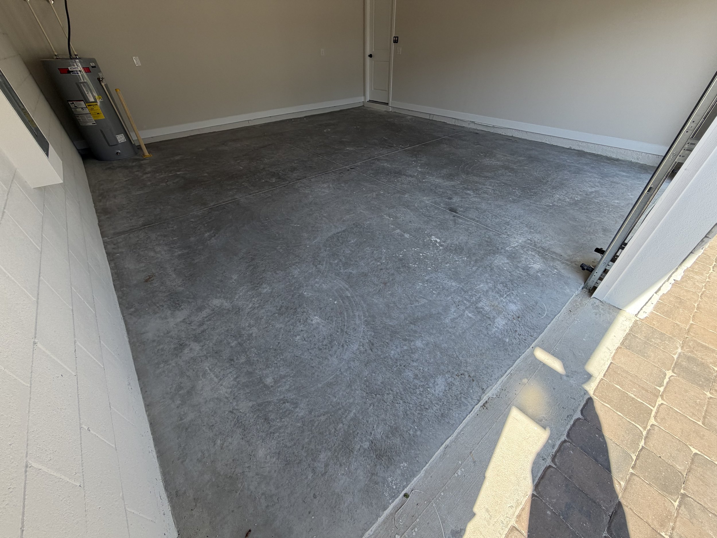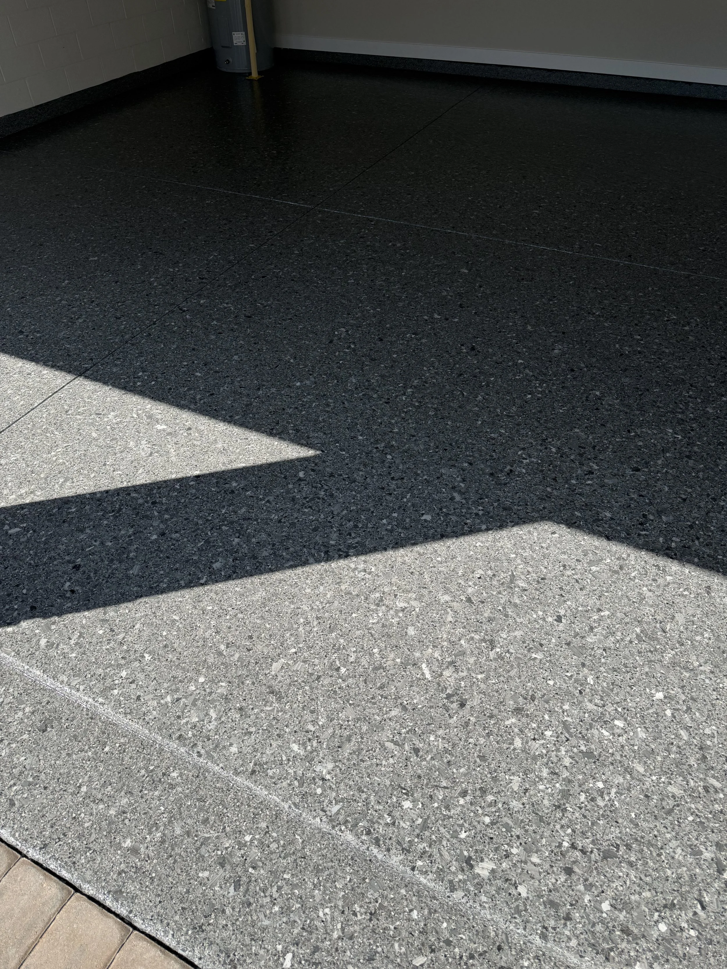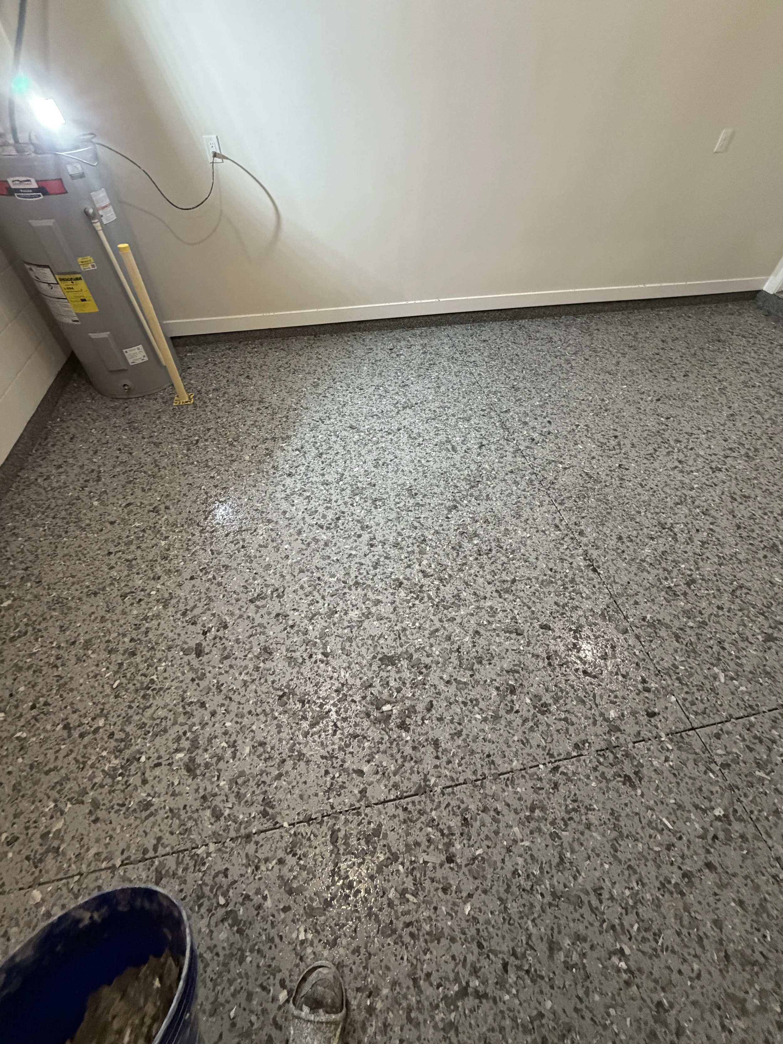 We were able to get this gorgeous coating done for our customer right after their closing so they didnβt have to worry about moving everything out of the garage to get a coating done! They chose our 1β Brindle style flake called Lanai Grey. Over our slate grey base coat this is one of my favorite finishes. Itβs a unique system that requires a bit more skill for installation to create uniform look. We first broadcast our 1β flake about 70/80% and then fill in the rest with the 1/4β flake. This creates a look that looks like a natural stone with different variations. It really finishes off the garage nicely!